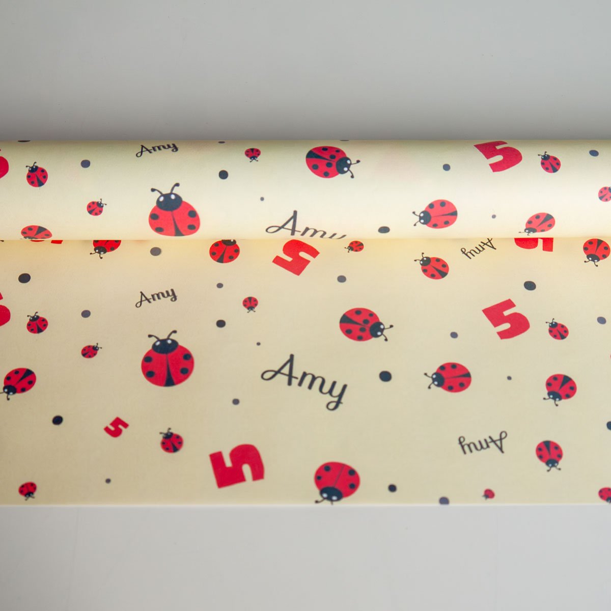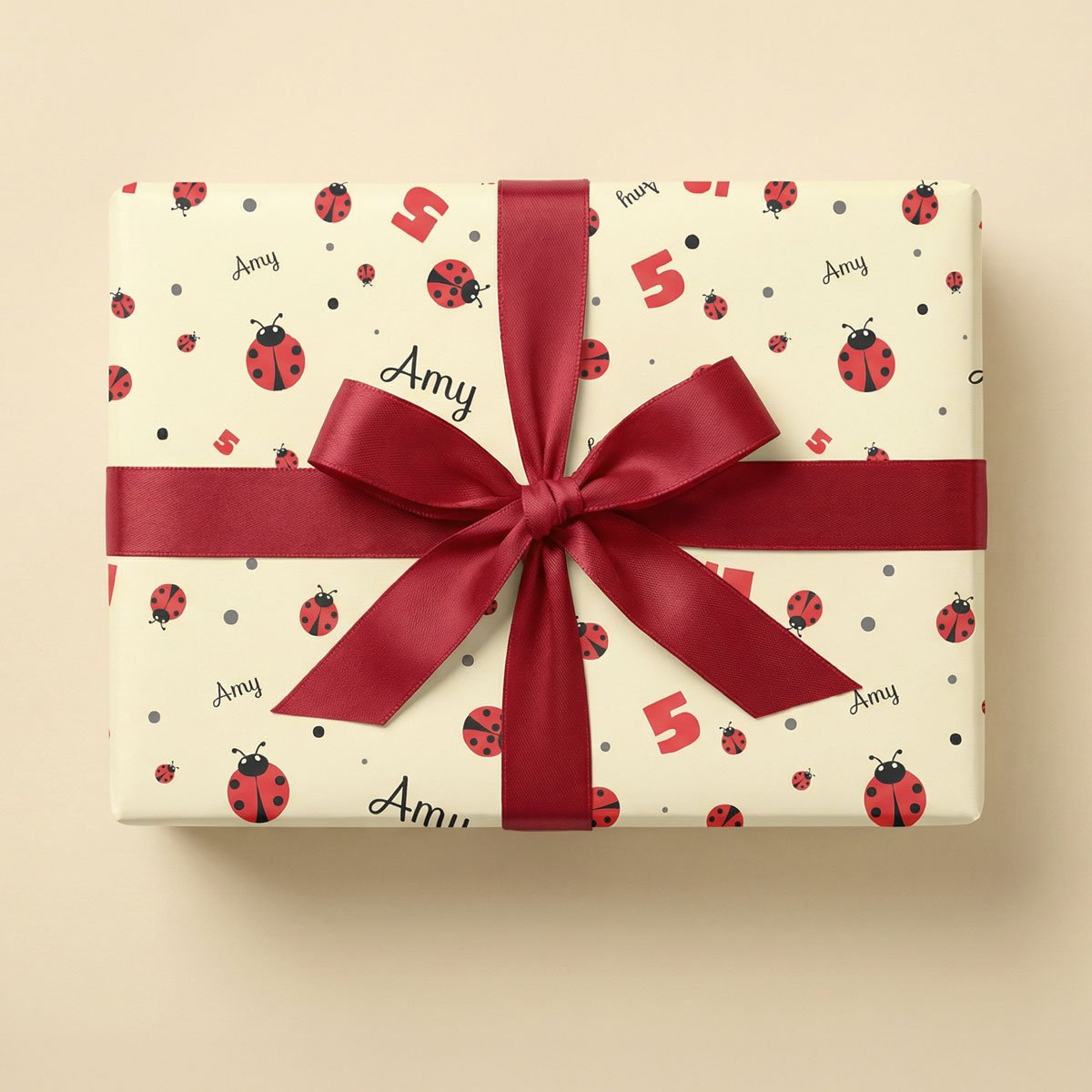 Make their birthday extra special with our adorable ladybird wrapping paper. Featuring cute ladybirds in cheerful red and black scattered across a soft cream background, this playful design is perfect for little ones.